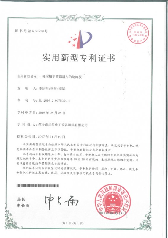 • 一種應(yīng)用于蒸餾塔內(nèi)的旋流板-實用